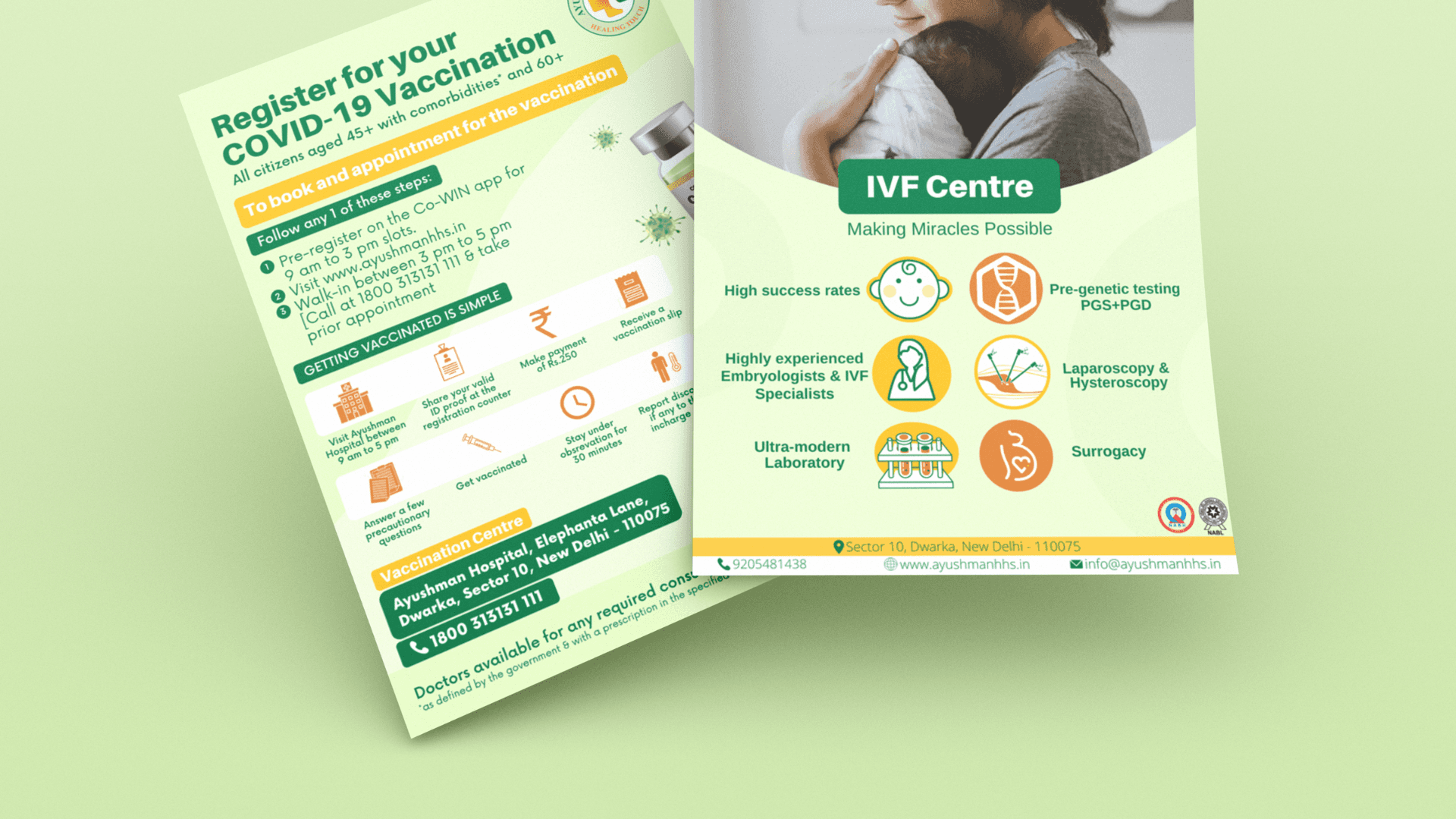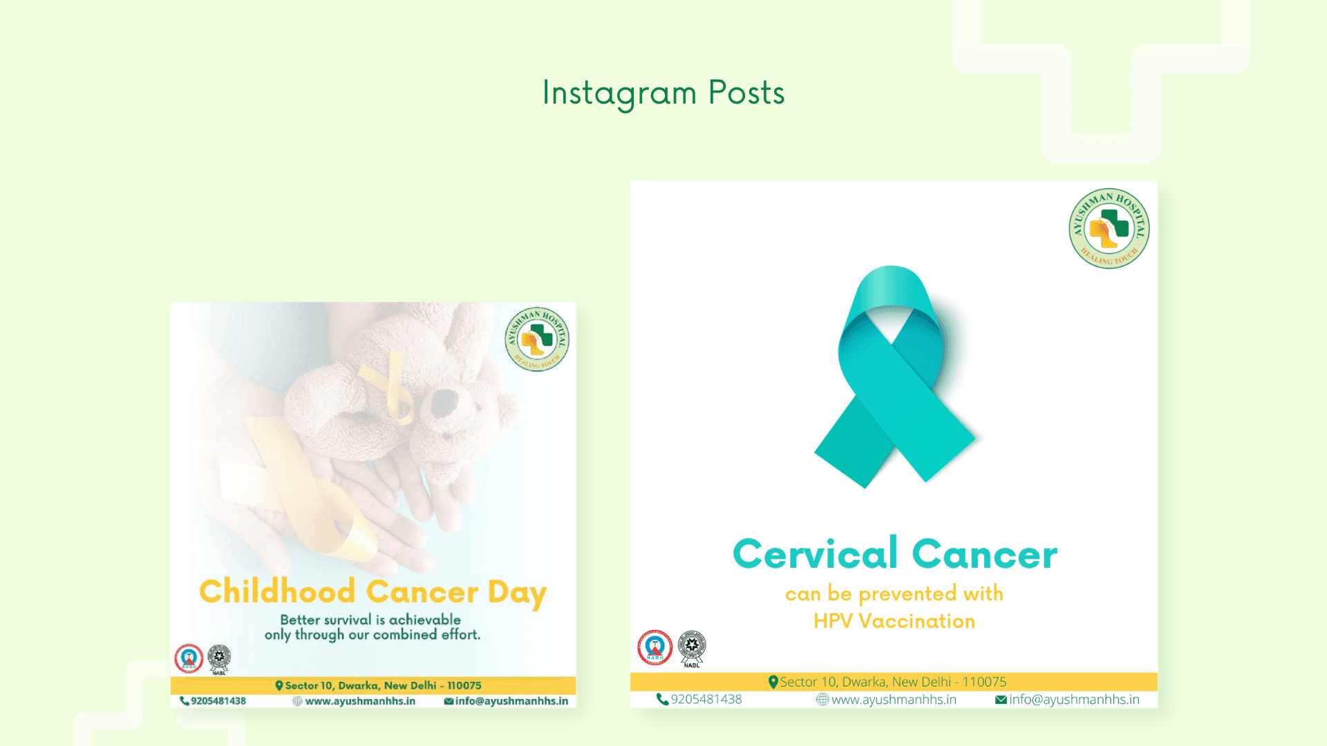 Ayushman Hospital is a multi-specialty provider focused on trust and patient-first care. The project involved creating a consistent visual identity across social media and print materials, designed to reflect a professional yet warm brand presence, working around an existing logo.