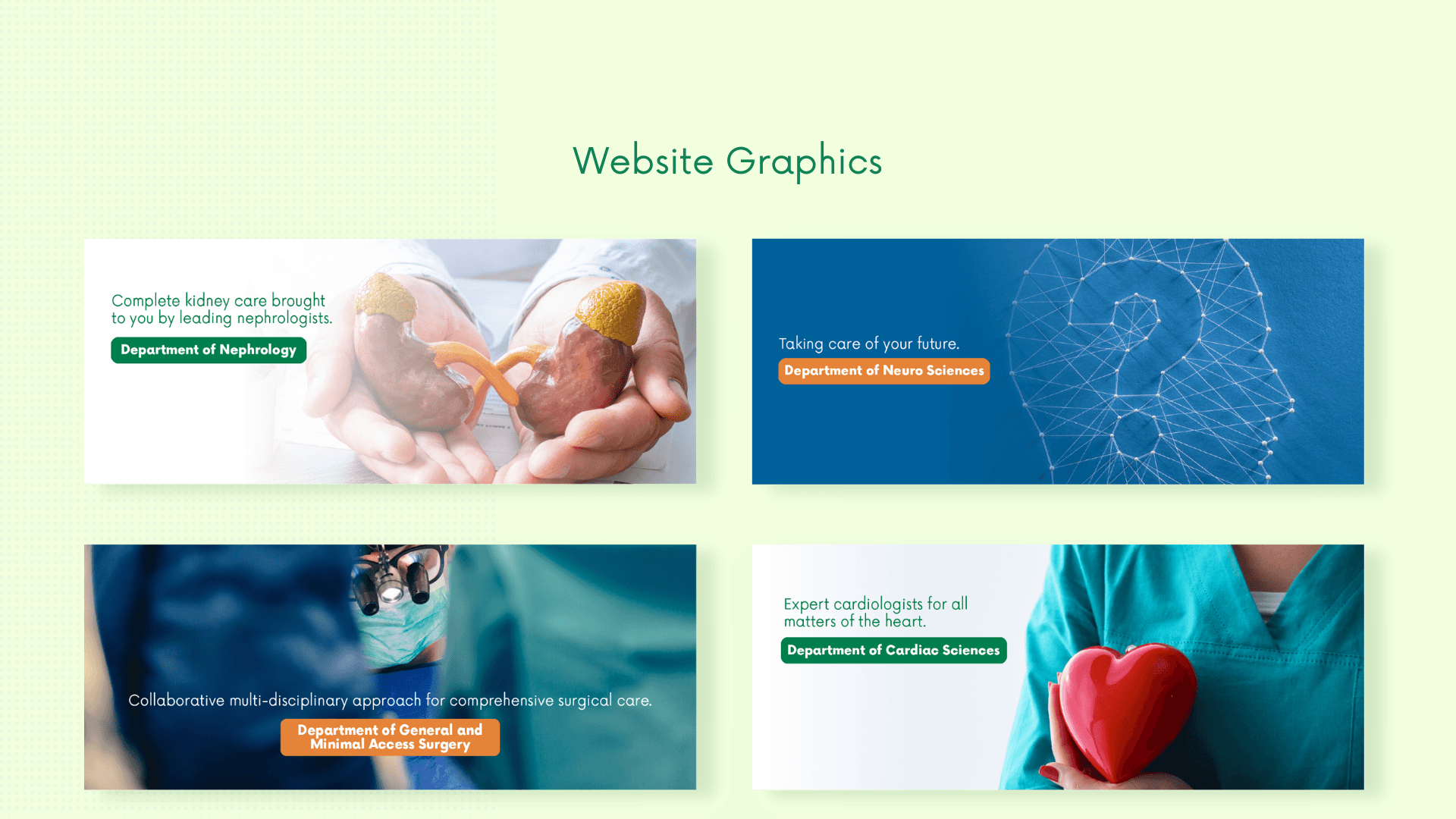 Developed a cohesive visual style using a soft palette, clean typography, and modular layouts. Incorporated imagery that evoked empathy and warmth, focusing on real people and patient-first care ensuring all communication felt modern, accessible, and aligned with healthcare standards.