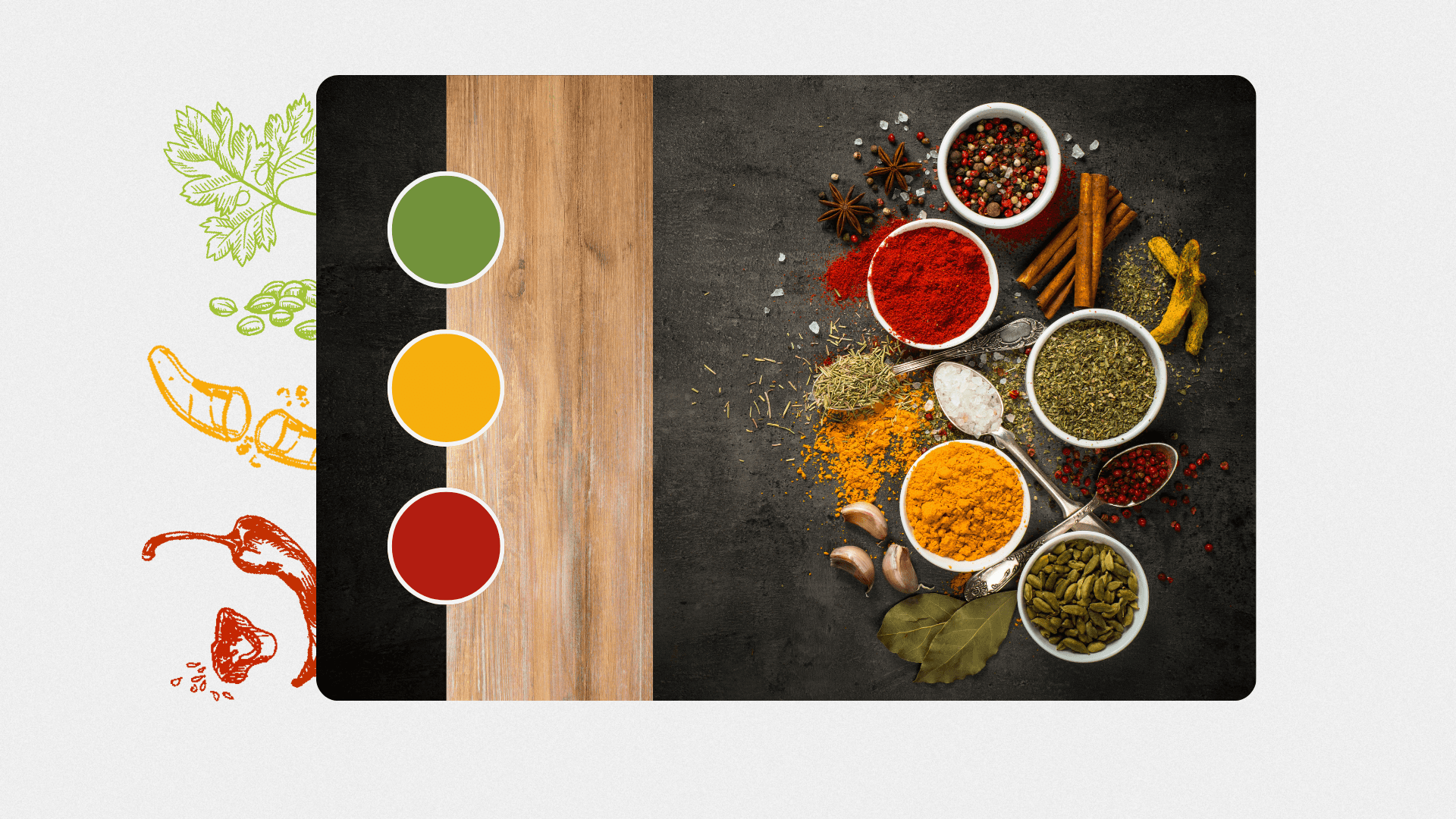 A more modern, dramatic style with richer contrast and detailed spice photography for maximum shelf appeal.
