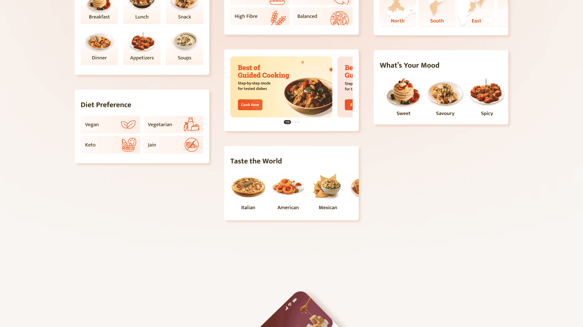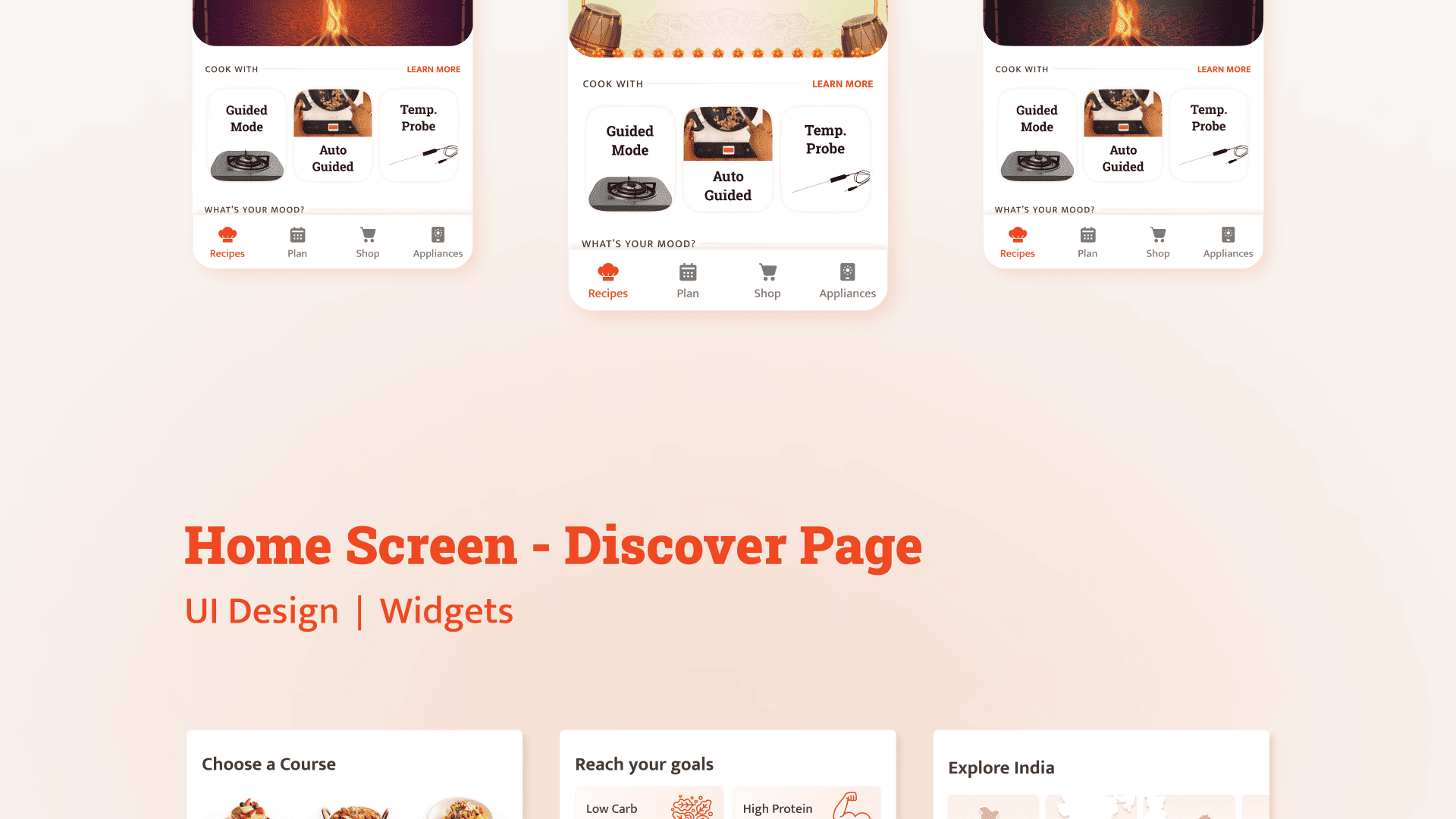 Created initial UI explorations for selective widgets on the home/recipe discovery screen.