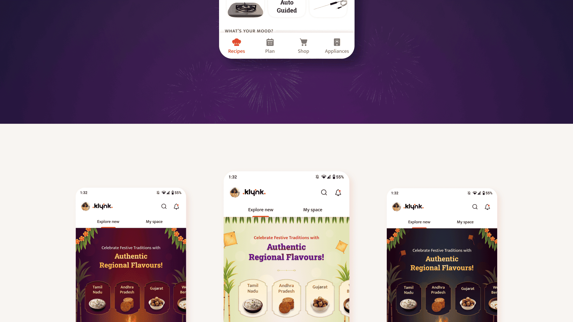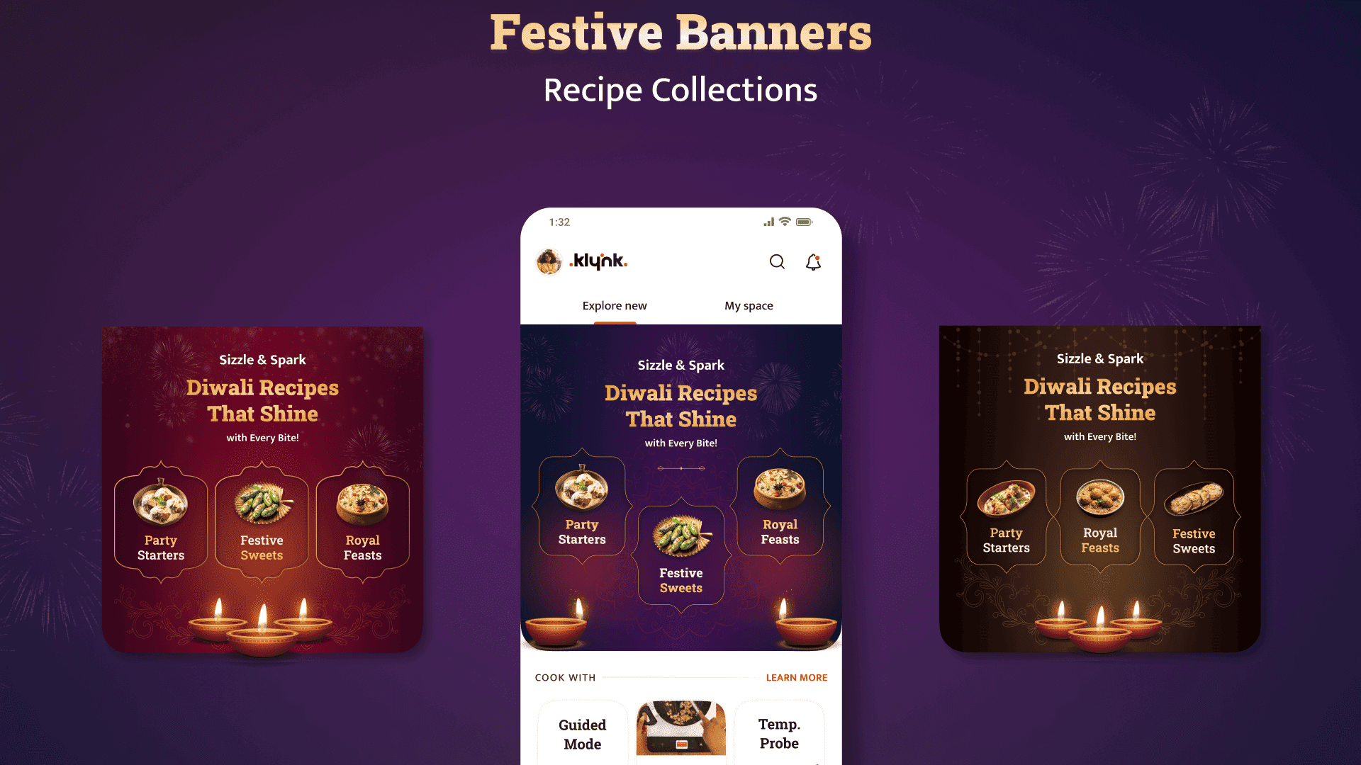 The project focused on redesigning the Home Page (Recipe Discovery Screen) of the Klynk mobile app, creating a more intuitive and engaging browsing experience. In addition, festive in-app banners were designed to spark seasonal interaction and drive higher engagement. The collaboration balanced functional clarity with visual appeal, enhancing both usability and delight.