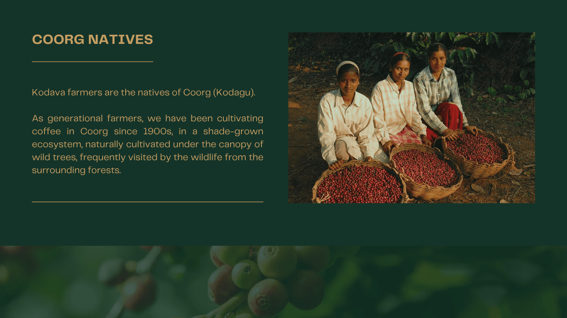 Researched Kodava culture, coffee farming practices, and visual markers of the region