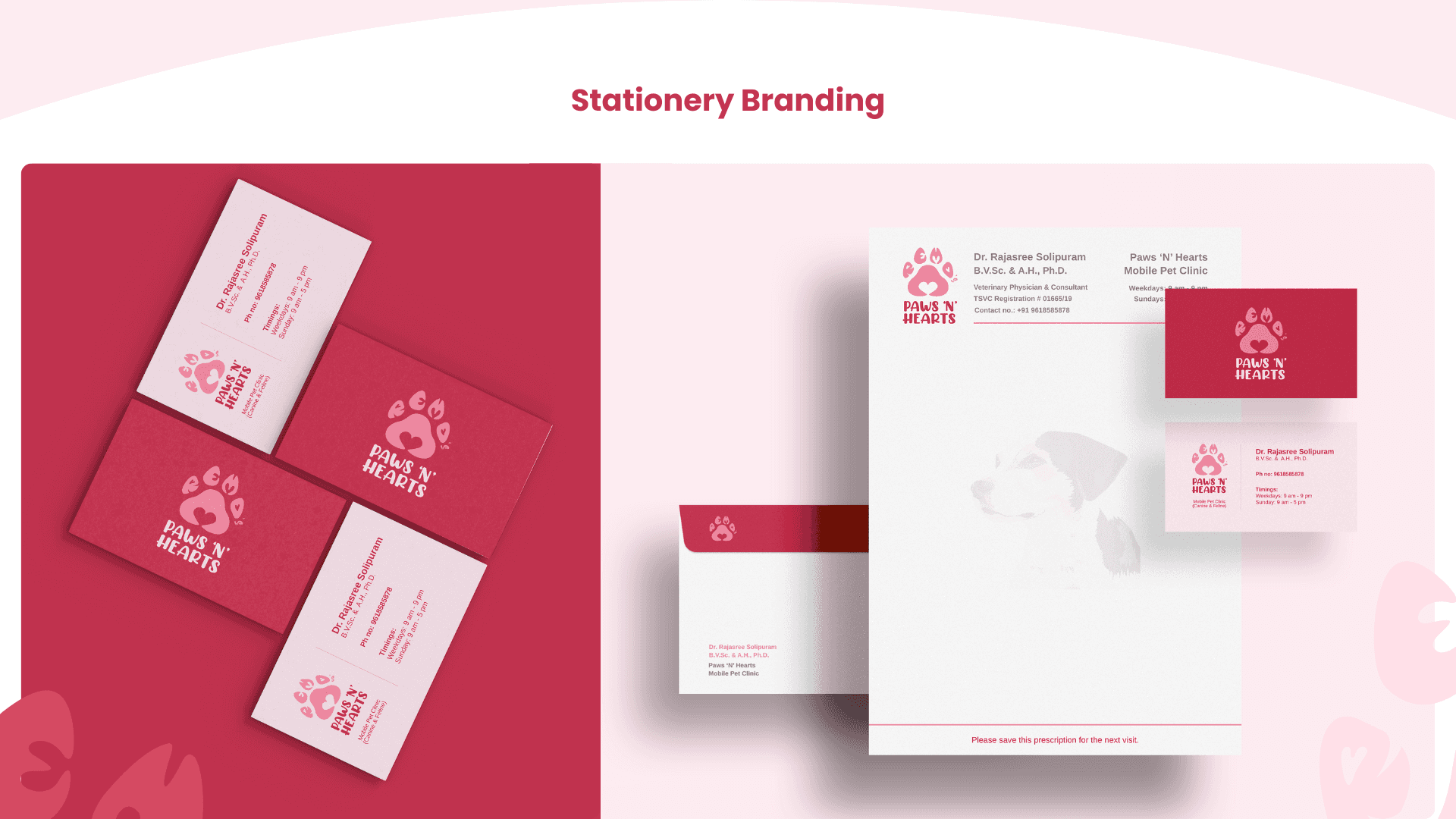 Paws N Hearts is a mobile pet clinic dedicated to providing on-the-go care for dogs and cats, with a focus on warmth, empathy, and comfort. This project involved building the brand’s visual identity from scratch including the logo, color palette, typography, and essential stationery. The design direction was driven by the emotional bond between pets and their humans, aiming to reflect affection, trust, and gentle care.